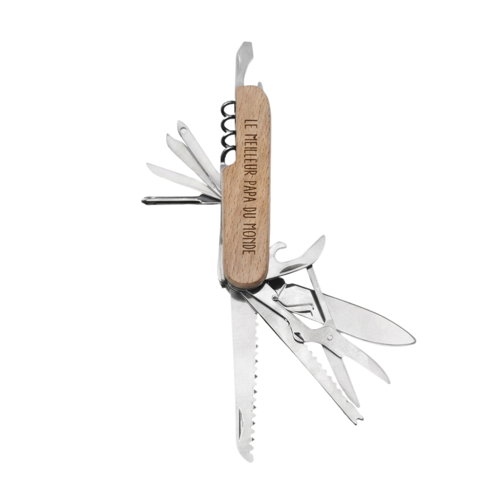 Cet élégant couteau suisse en bois se distingue par sa capacité à être gravé, transformant un outil fonctionnel en présent personnalisé mémorable. Bénéficiant de la renommée suisse pour sa précision, il intègre lames affûtées et accessoires pratiques dans un design épuré. Le bois naturel du manche offre une texture authentique et une prise sûre. Parfait pour les cadeaux d'entreprise, les anniversaires ou simplement pour marquer votre signature sur un compagnon de tous les jours. Gravure possible pour une touche d'unicité.